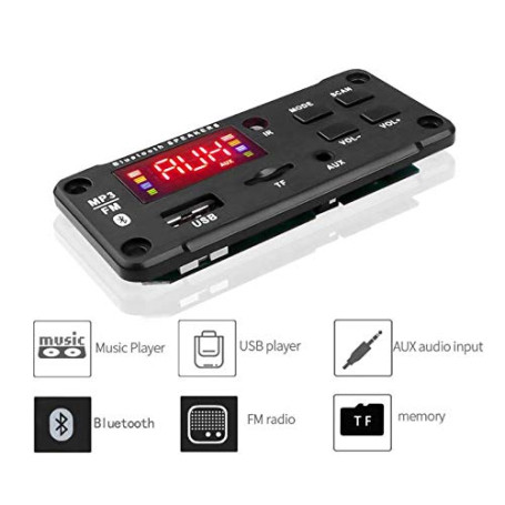 این پخش کننده MP3 با قابلیت بلوتوث همچنین دارای قابلیتهای دیگری نیز هستند، مانند رادیو FM، ضبط صوت، شکاف کارت حافظه برای ذخیره فایلهای MP3 و خروجی صوتی جهت اتصال به آمپلی فایر و بلندگوها میباشد.